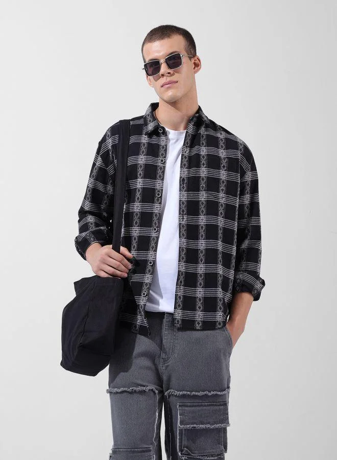 Men Relaxed Fit Checked Cutaway Collar Full Sleeves Shirt