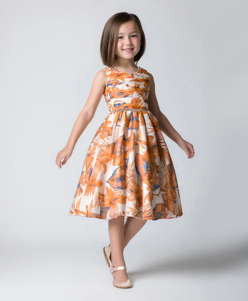 Mark & Mia Floral Embroidery & Ruffles Detailed Sleeveless Party Wear Frock - Peach