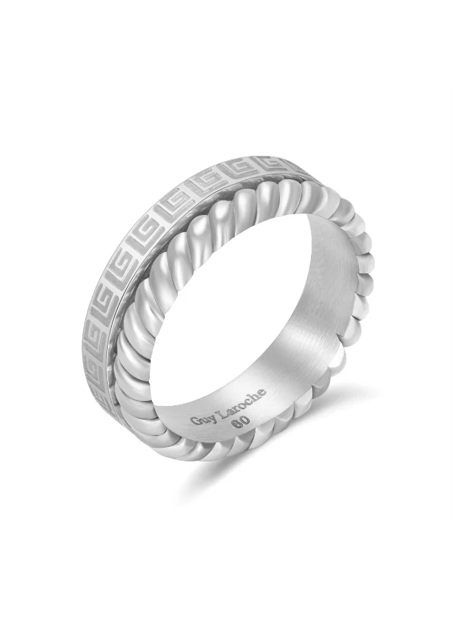 Romain Two-Line Stainless Steel Ring with Twisted Wire & Running Logo – Size 62
