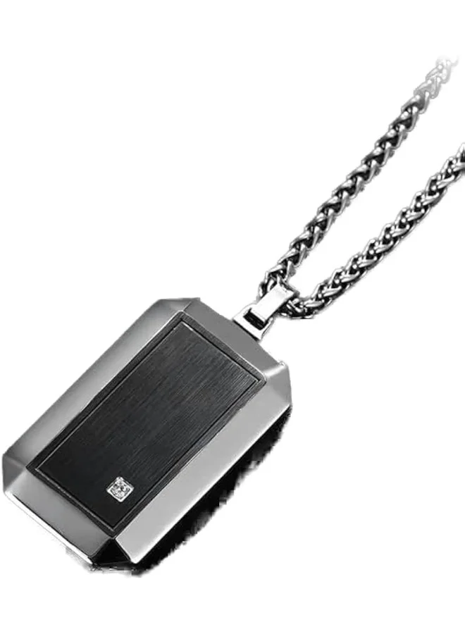 Men's Stainless Steel Silver/Black Necklace - LC.N.01178.350