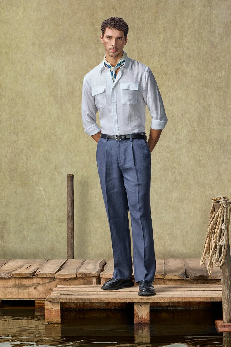 Mens Solid Navy Oversized Cotton Cargo Pant