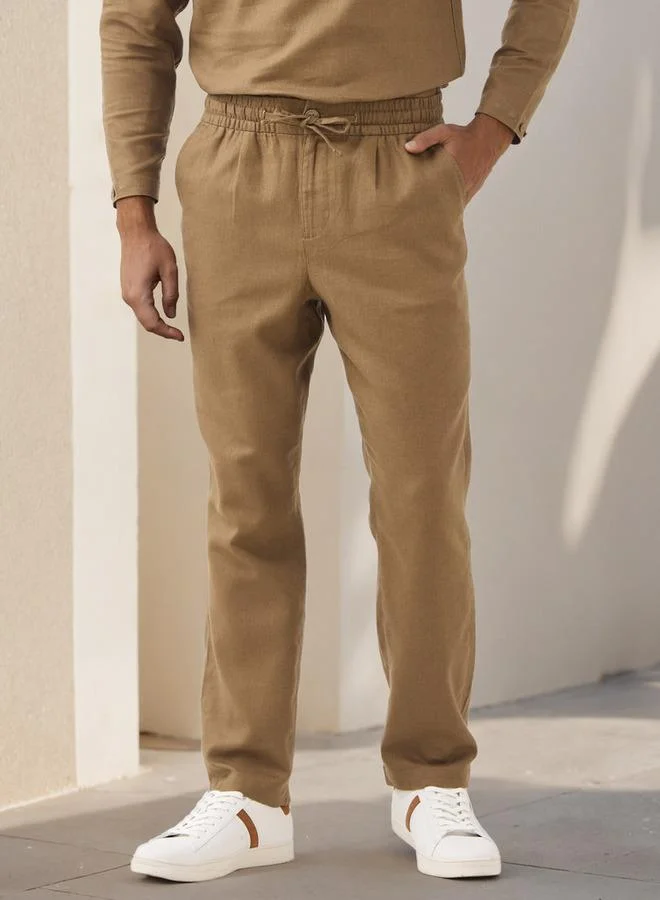 Iconic Regular Fit Linen Blend Pants with Pockets
