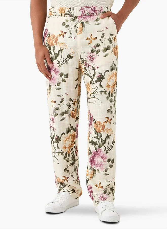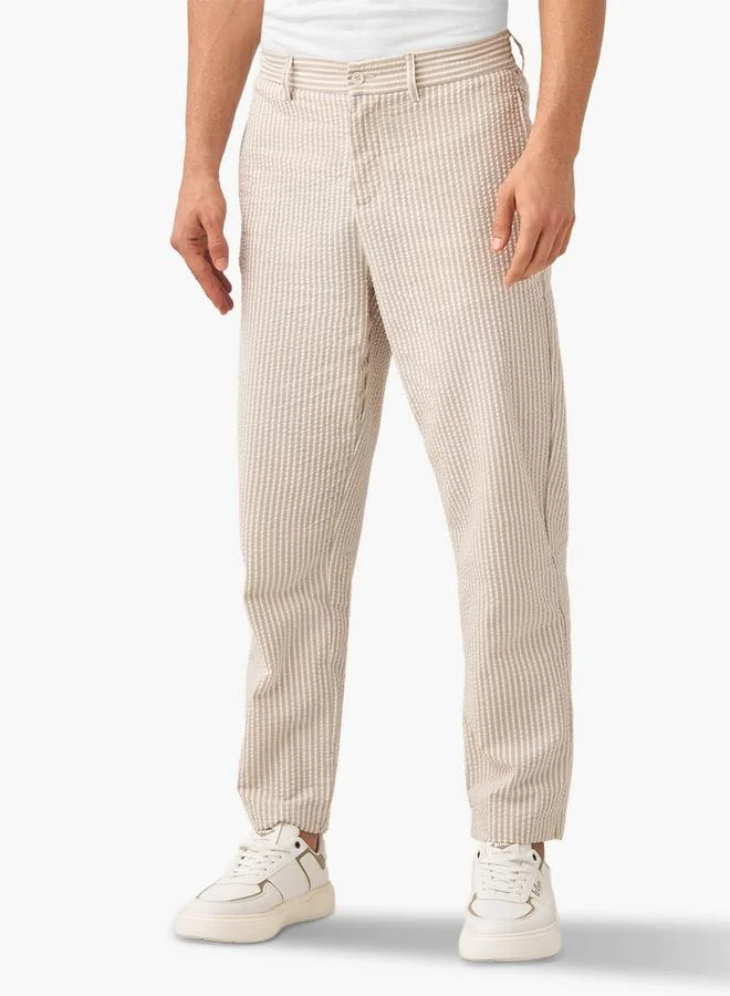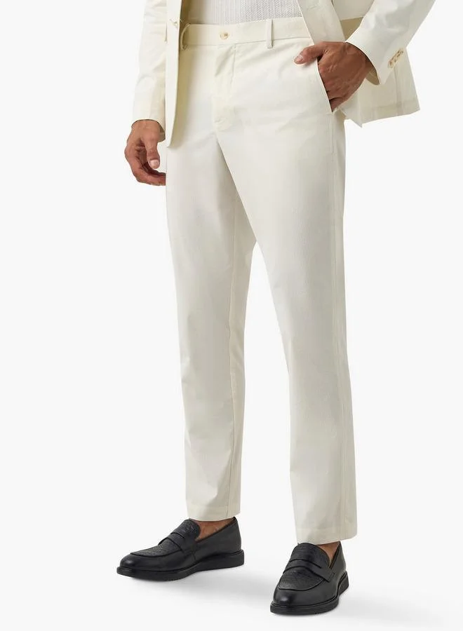 Iconic Regular Fit Textured Pants with Elasticated Waistband and Pockets