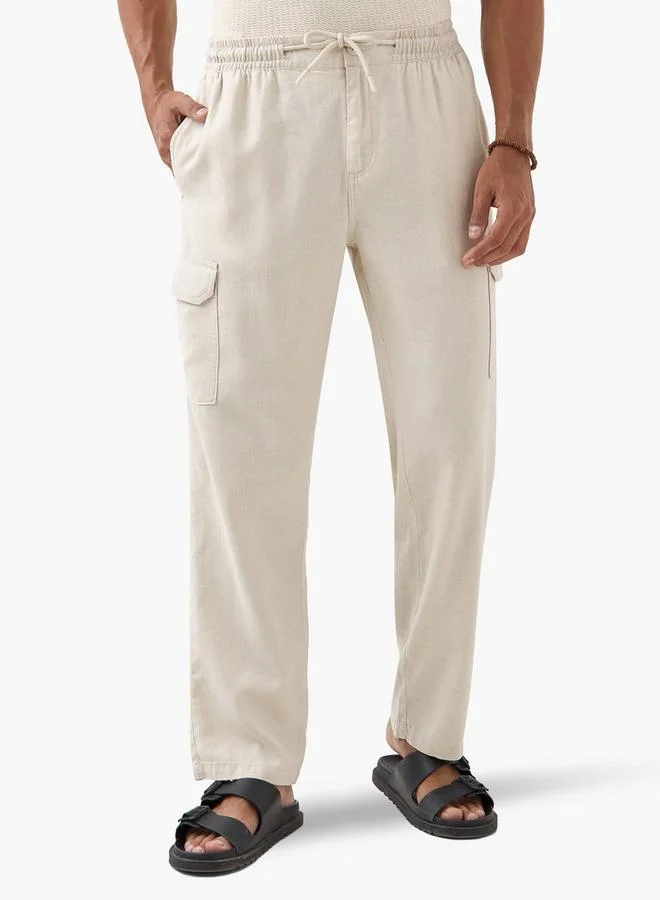 Iconic Linen Blend Cargo Trousers with Drawstring