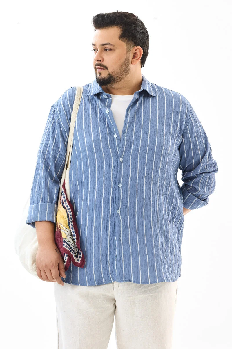 Regular Fit Stripes Light Blue Plus Size Shirt