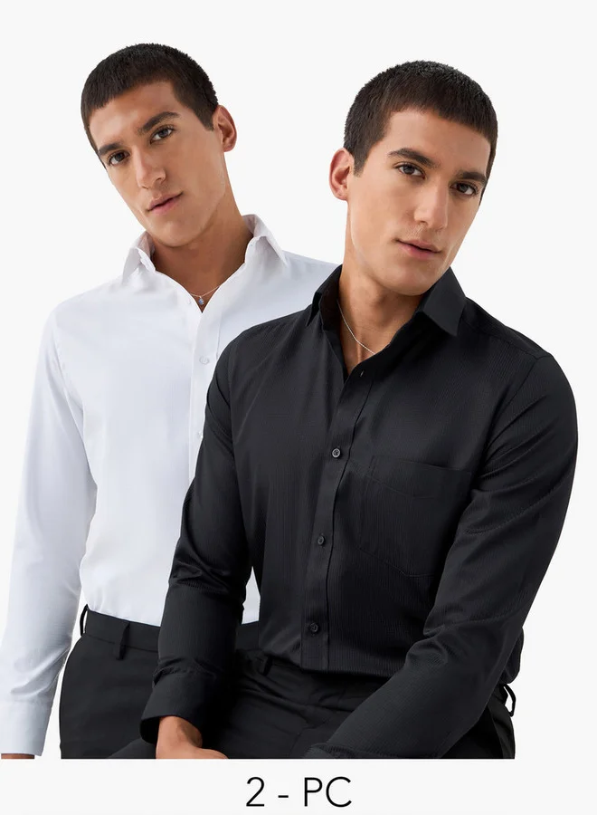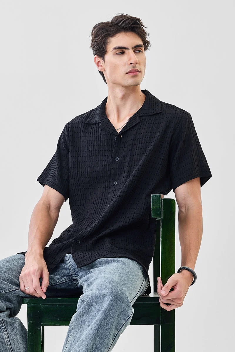 Men's Black 100% Cotton Textured Button Down Regular FiT-Shirt