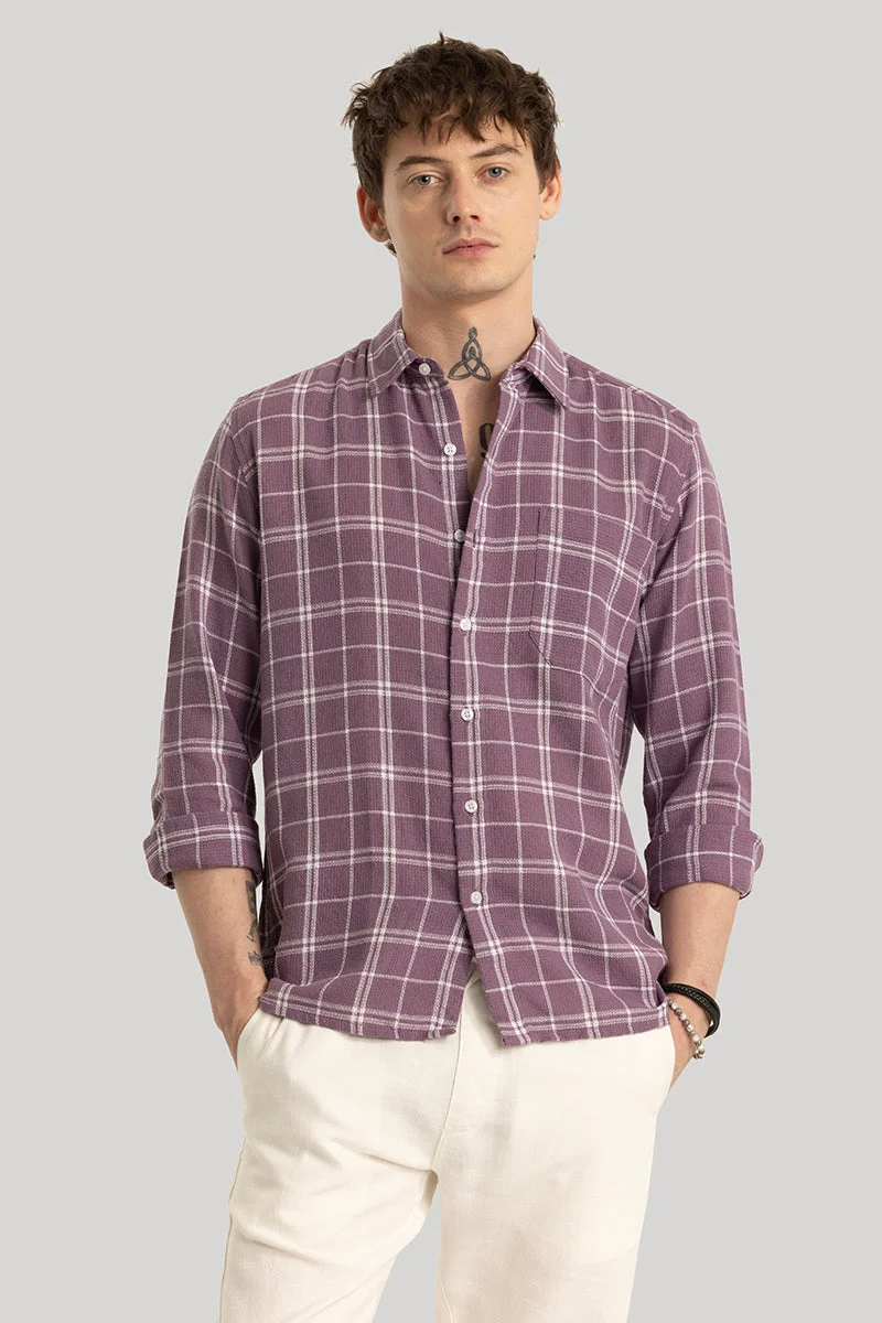 Men's Mauve 100% Cotton Printed Button Down Regular FiT-Shirt