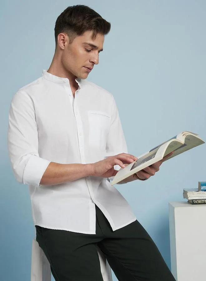 Dennis lingo Men White Comfort Slim Fit Casual Shirt