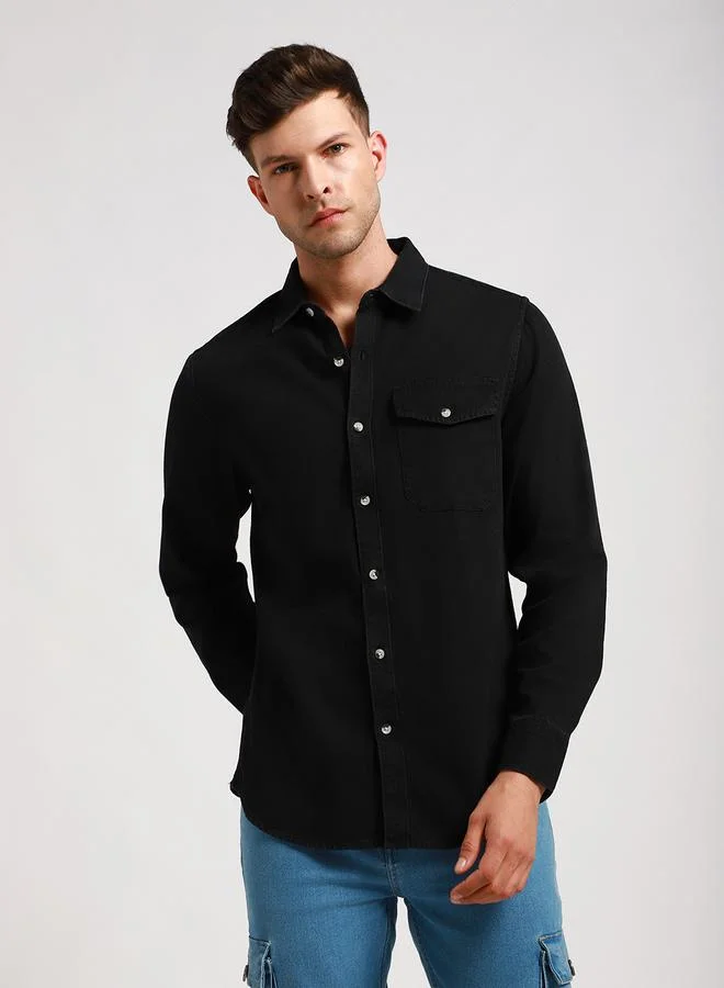 Solid Casual Shirt with Flap Pocket by Styli