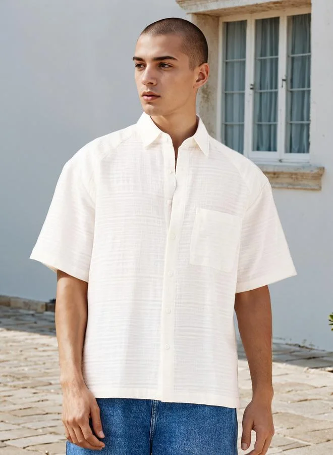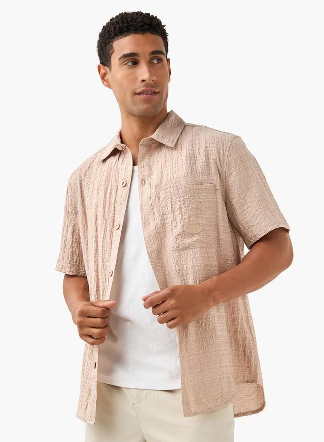 Lee Cooper Regular Fit Textured Resort Shirt with Collar