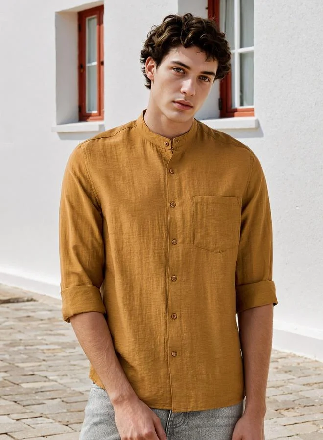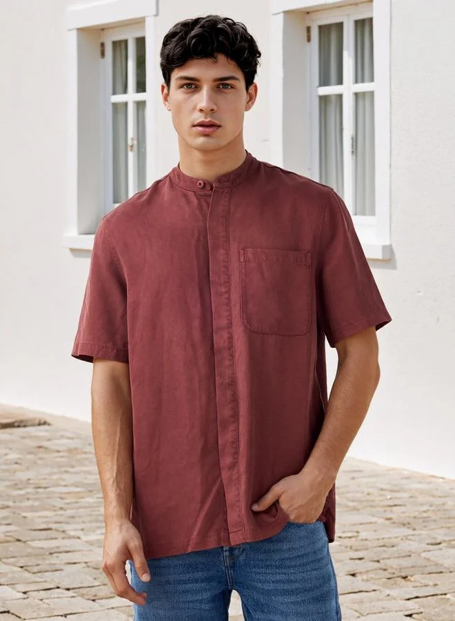 Lee Cooper Regular Fit Mandarin Collar Tencel Shirt
