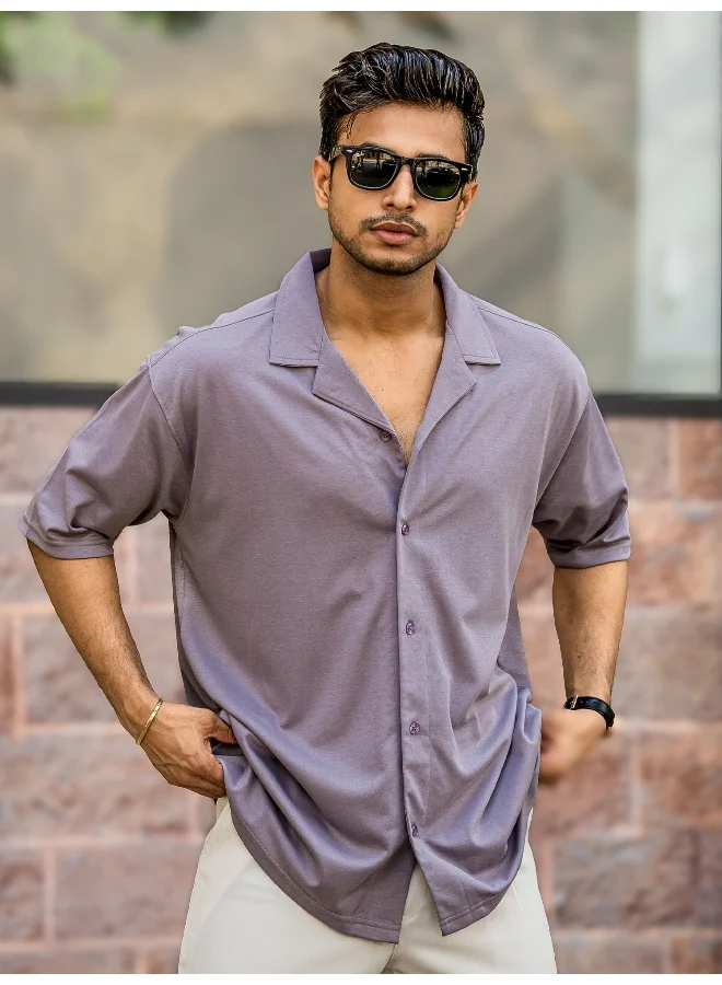 Maniac Mens Solid Collar Neck Half Sleeve Lilac Color CottonBlend Shirt