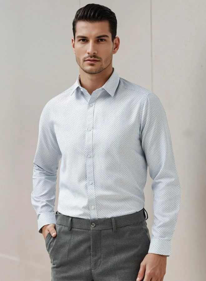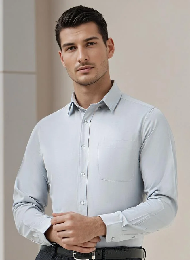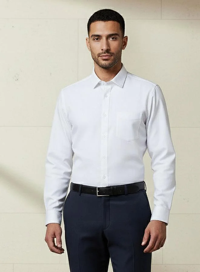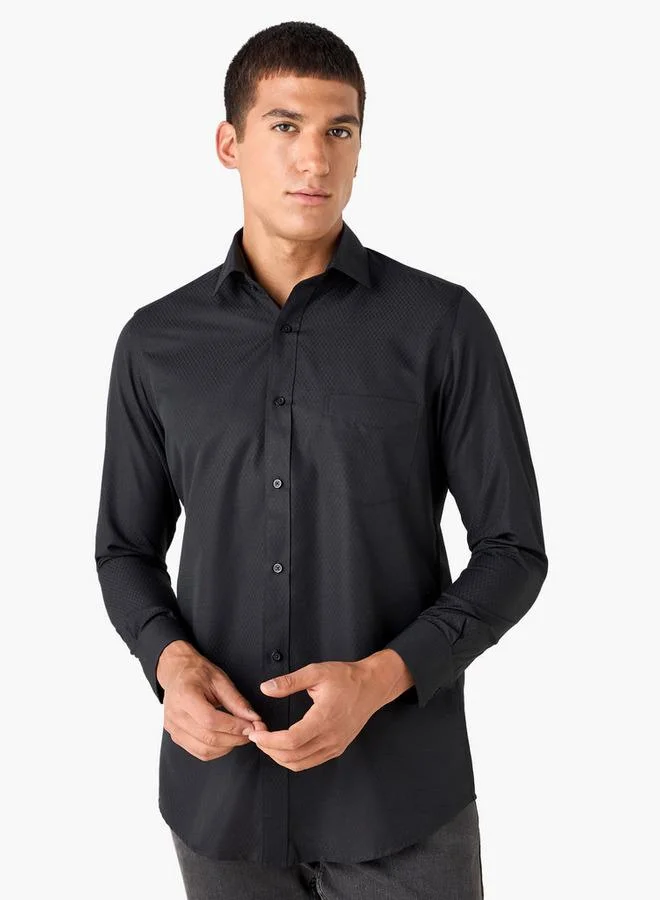 Regular Fit Textured Collared Shirt with Chest Pocket
