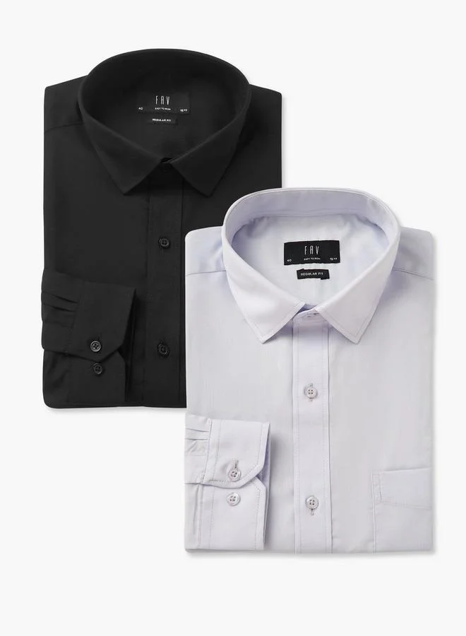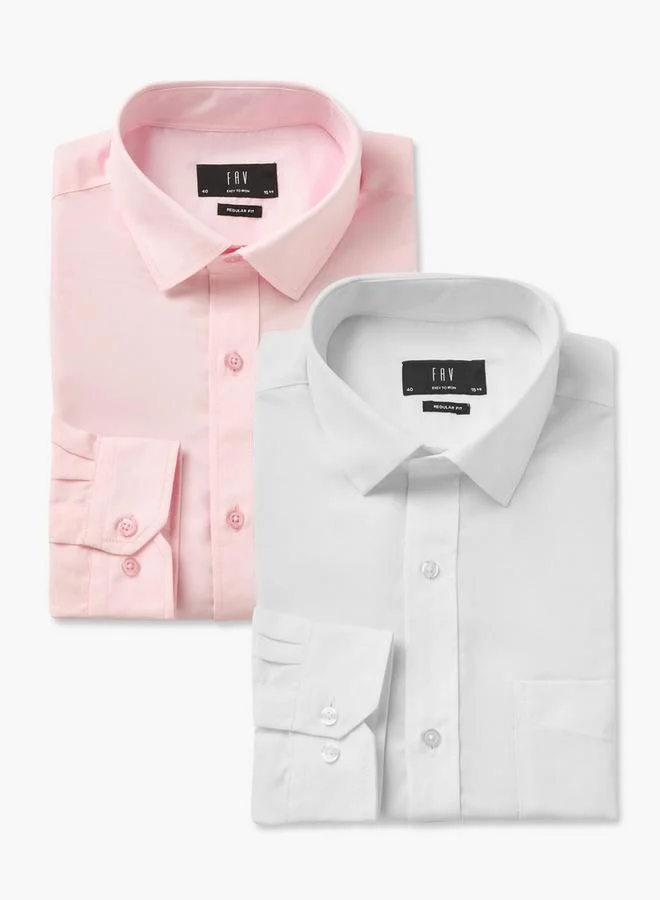 Set of 2 - Regular Fit Collared Shirt with Long Sleeves