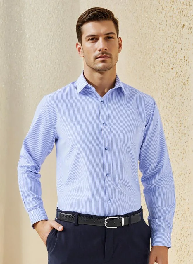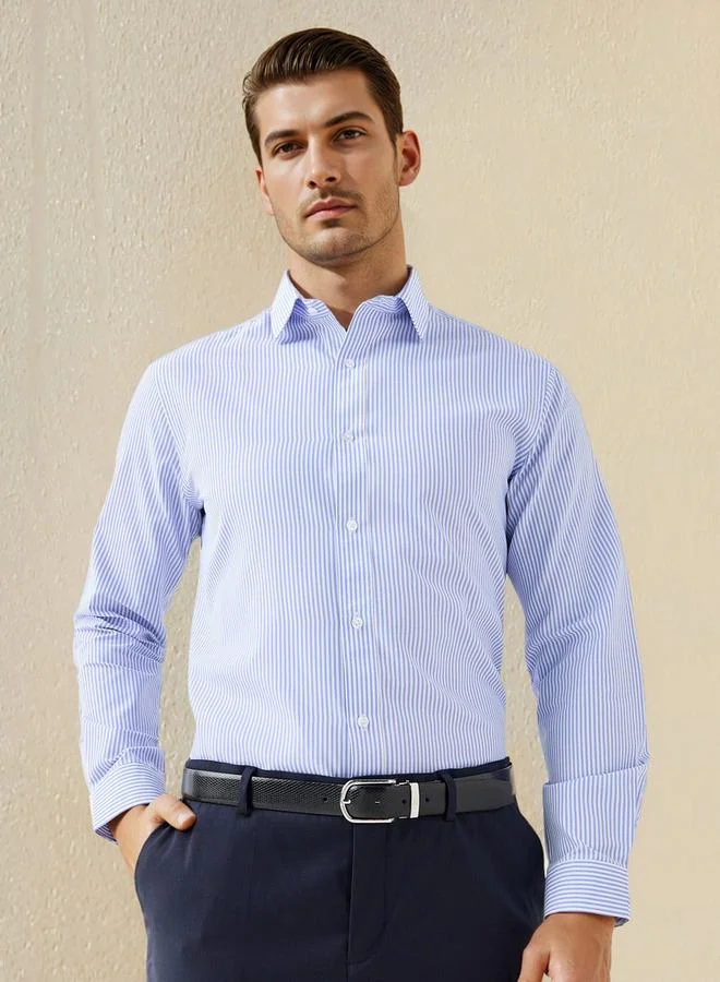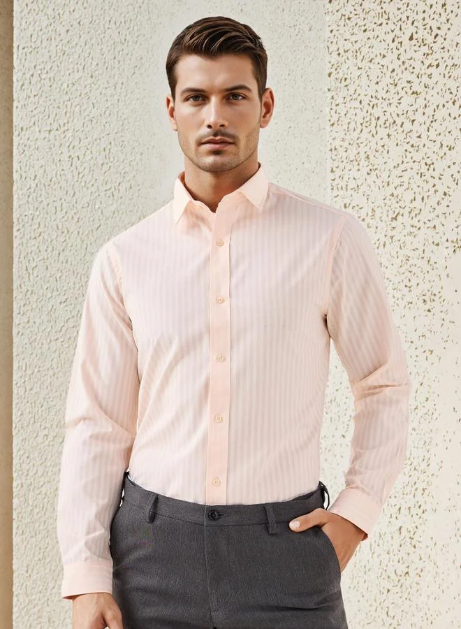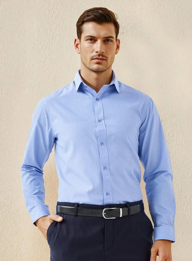 Regular Fit Striped Collared Shirt with Long Sleeves