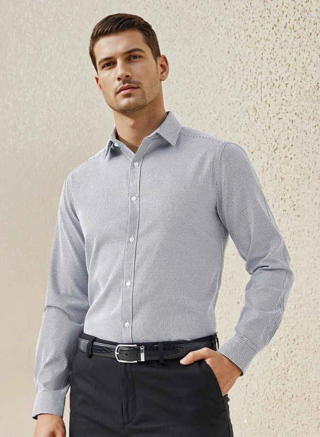 Regular Fit Checked Collared Shirt with Long Sleeves