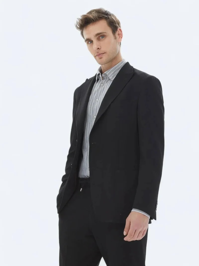 Hard Coal Patterned Modern Fit Wool Blended Jacket