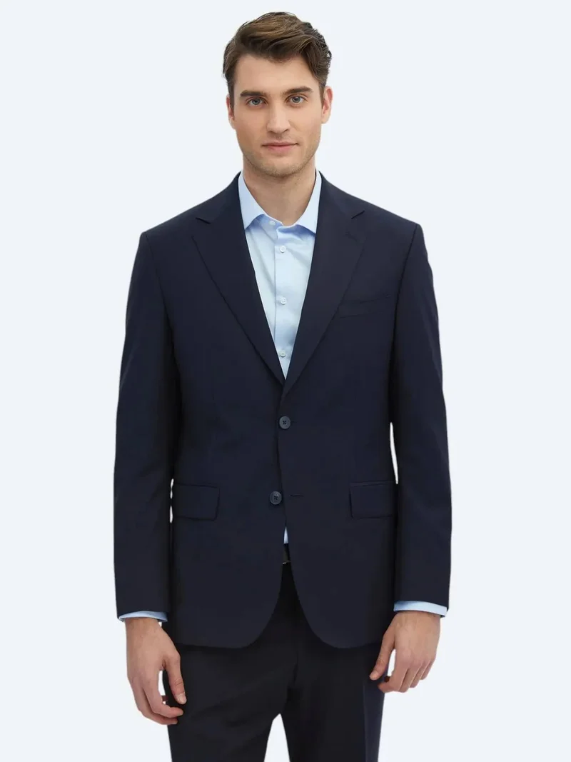 Navy Blue Plain Modern Fit Wool Blended Suit