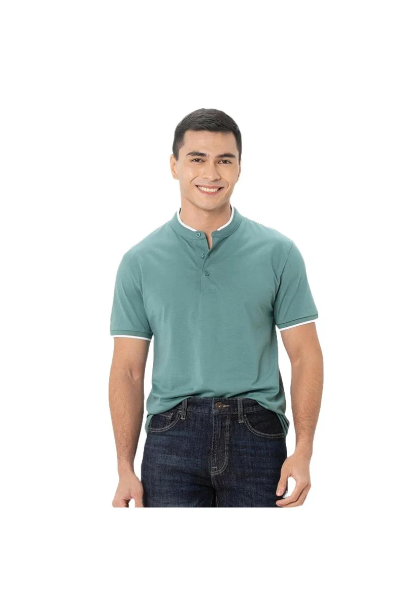 Men's Green Slim Fit Cotton Henley Tee