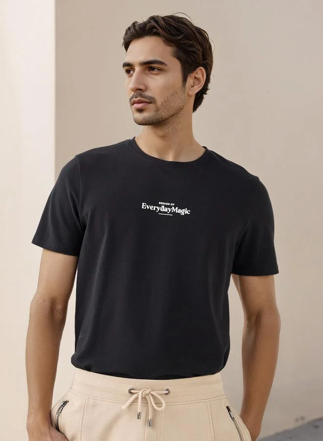 Iconic Typographic Print Crew Neck T-shirt with Short Sleeves