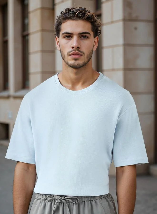 Iconic Waffle Textured T-shirt with Crew Neck and Short Sleeves
