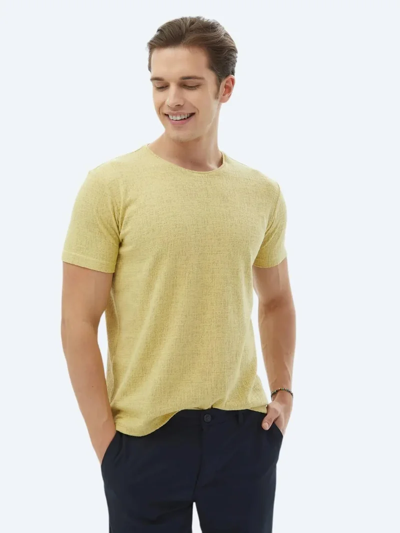Mustard Plain Crew Neck Cotton Blended T-Shirt