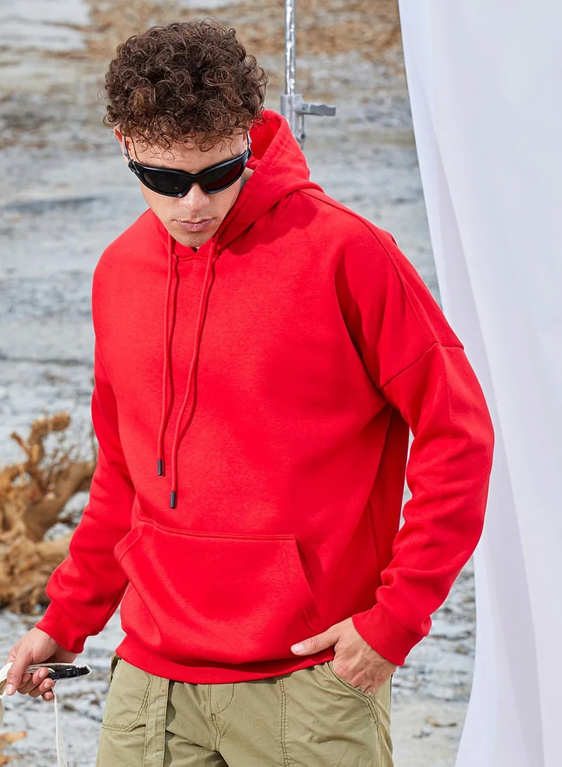 Instafab Plus Men's Maroon Red Zip-Front Hoodie With Contrast Drawstring