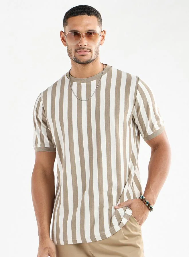 Men's Marshmallow 100% Cotton Striped Regular Fit T-Shirt