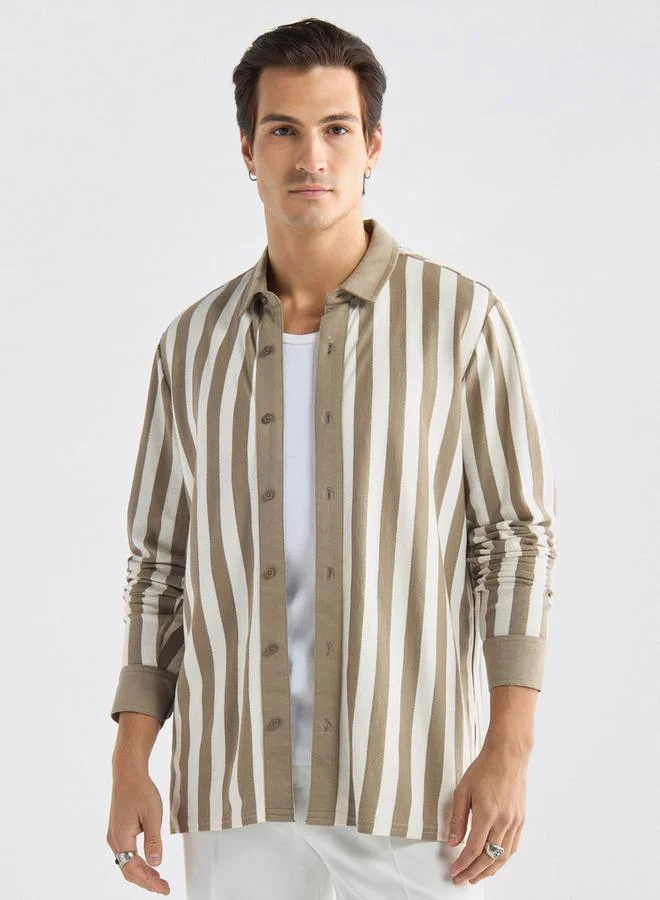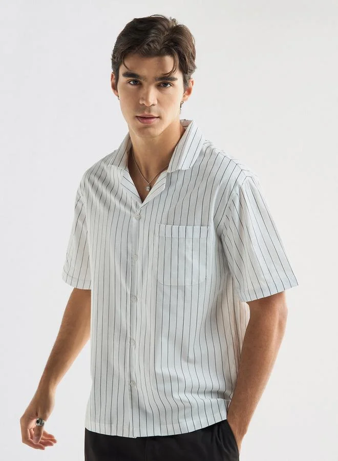Regular Fit Striped Shirt with Camp Collar and Short Sleeves