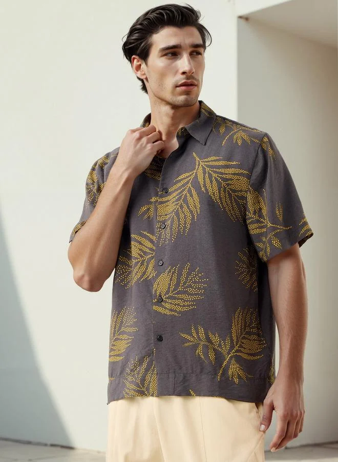 Khaki Plain Regular Fit Weaving Classical Shirt