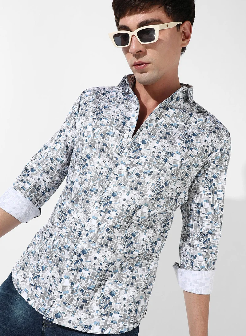 Men Regular Fit Striped Cutaway Collar Full Sleeves Shirt