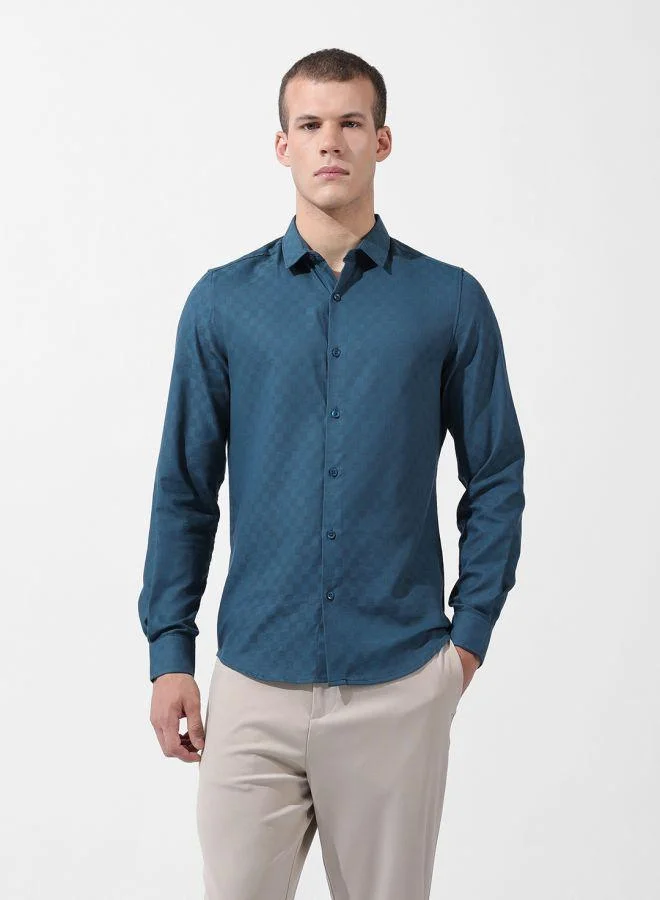 Instafab Plus Men's Blue & Grey Fray-Stroke Imprint Shirt For Casual Wear | Spread Collar | Long Cuffed Sleeves | Button Closure | Plus Size Shirt Crafted With Comfort Fit For Everyday Wear