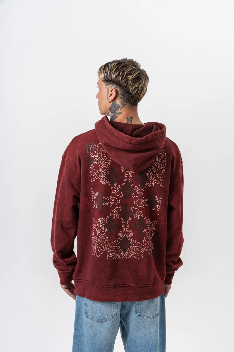 Men's 10 Printed Washed Hooded Oversize Hoodie Bordeaux