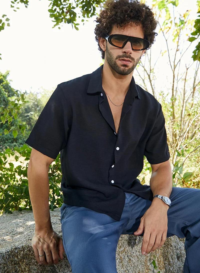 Men Boxy Fit Solid Cutaway Collar Full Sleeves Shirt