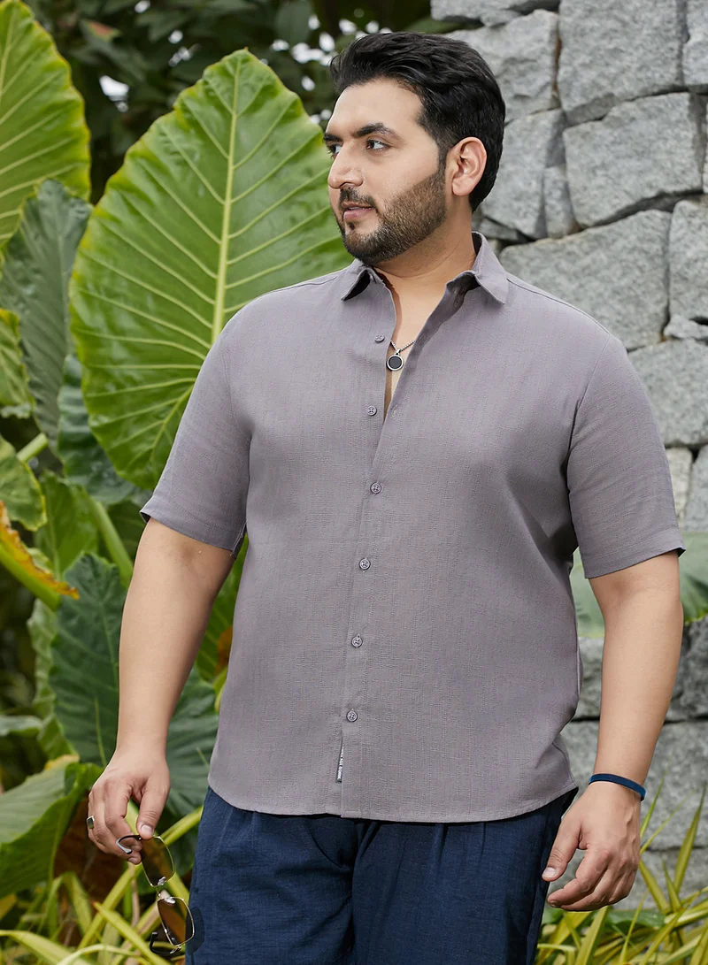 Men's Moon Grey Solid Cotton Shirt For Casual Wear | Spread Collar | Short Regular Sleeves | Button Closure | Plus Size Shirt Crafted With Comfort Fit For Everyday Wear