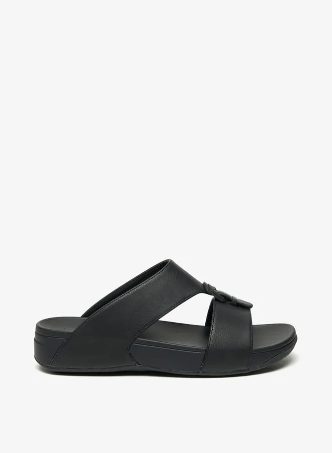 Men's Textured Slip-On Sandal with Buckle Detail