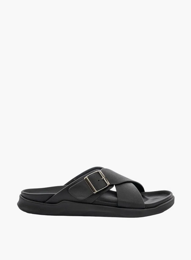 Men Buckle Accent Cross-Strap Slip-On Sandals