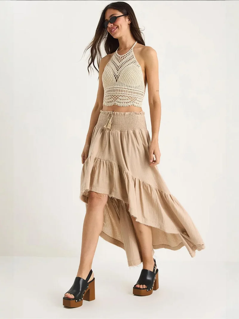 BDART Long Sleeve A-Form Maxi Dress with Waistband Detail