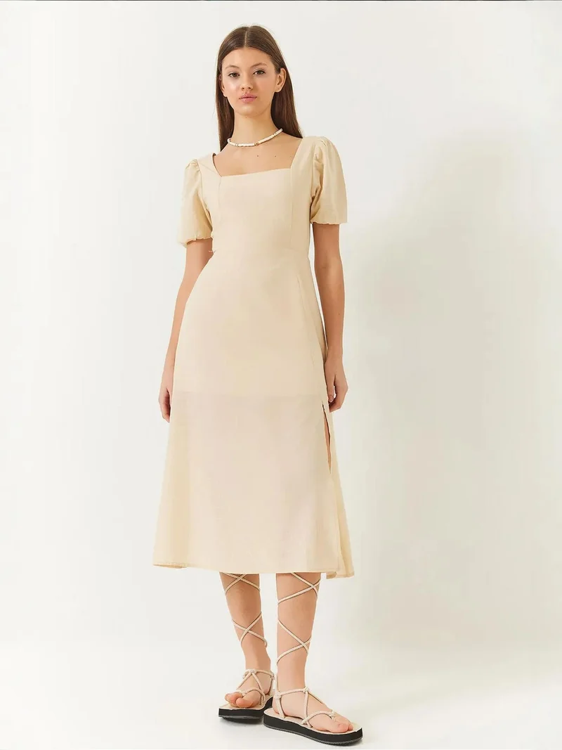 Textured Bodycon Dress with Square Neck and Tulip Hemline