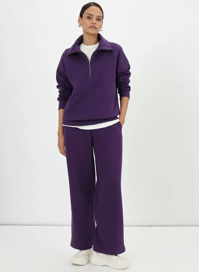 Styli Solid Pintuck Detail Straight Fit Joggers with Elastic Waist
