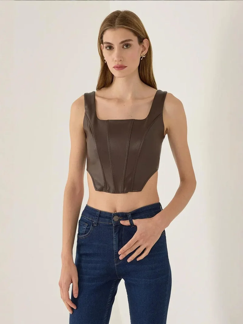LUCCI Textured Knitwear Crop Sweater with Shirt Collar