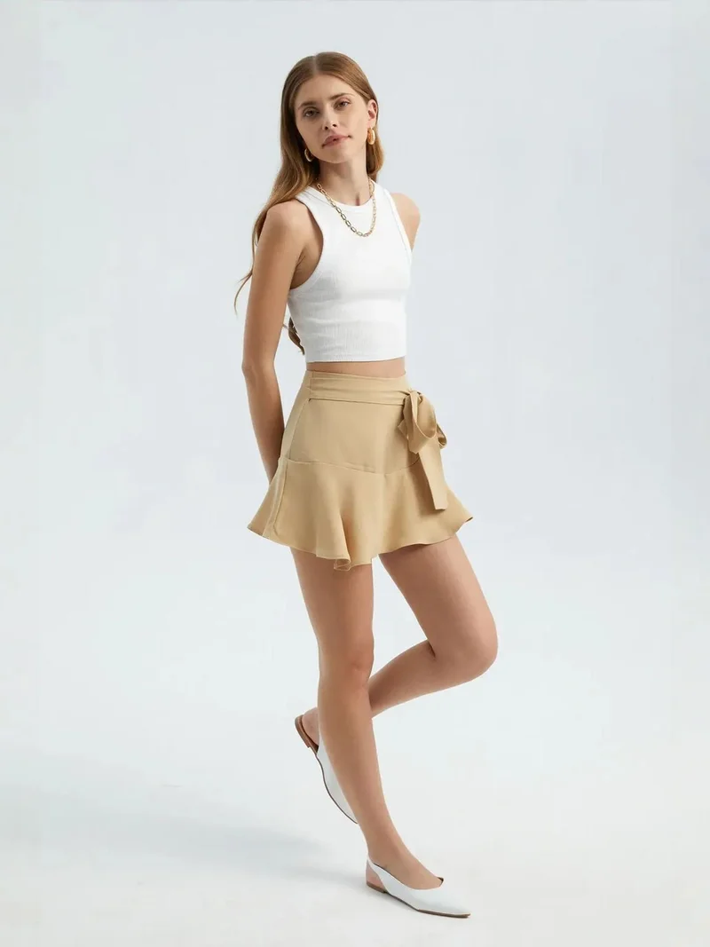 Styli Ruffled Wrap Top With Tie-Up Detail