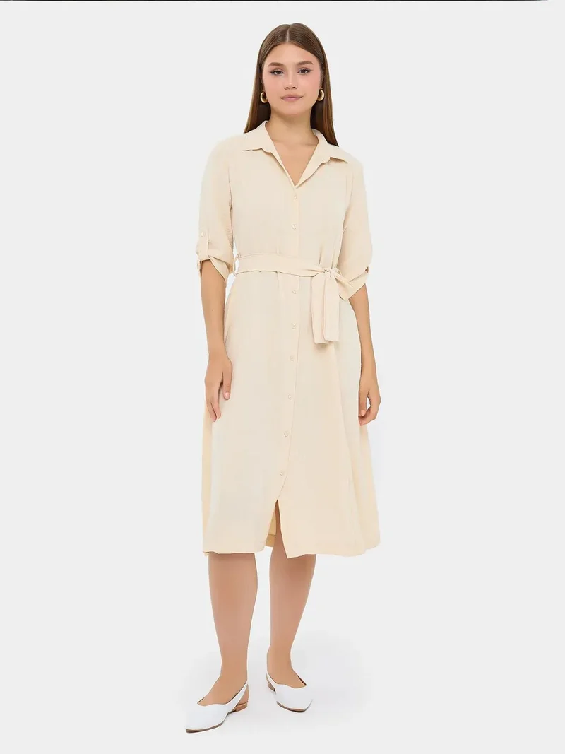 Styli Puff Sleeves Pleated Wrap Style Midi Dress