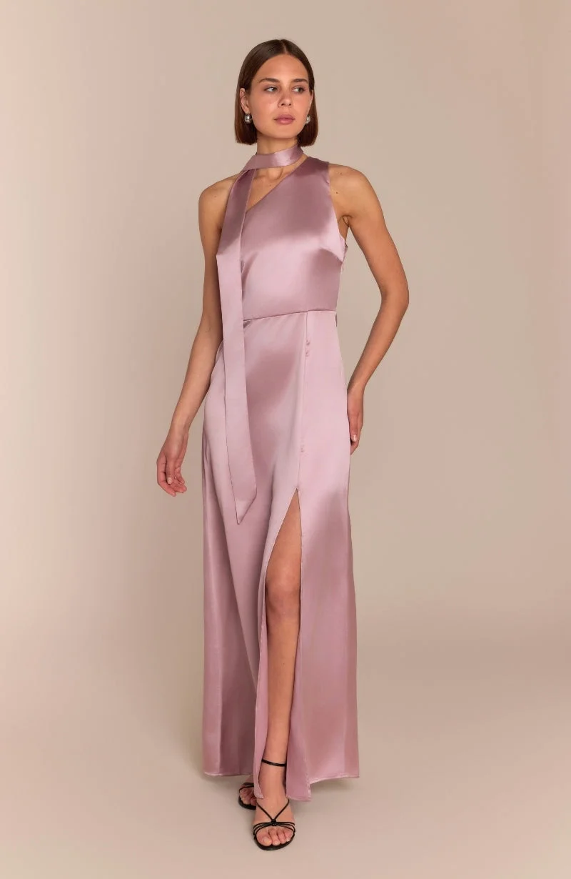 Scoop Neck Spaghetti Strap Midi Bodycon Dress with a Side Slit