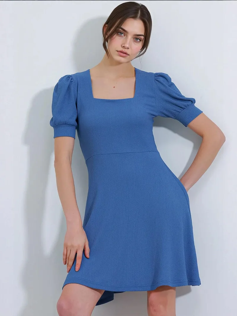 LUCCI Ribbed Jersey Mini Dress with Crew Neck