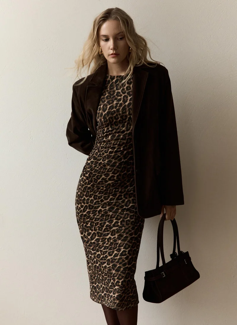 Take Two Printed Sleeveless Ruched Detail Bodycon Midi Dress