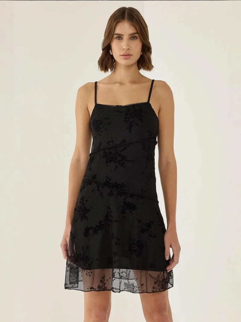 Ribbed Ruffled Square Neck Mini Dress with Balloon Sleeves