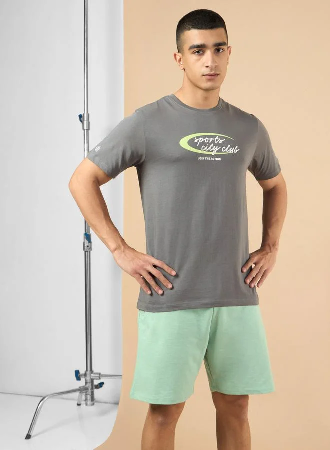 Men Grey Sports City Club Graphic Print Short Sleeve T-Shirt