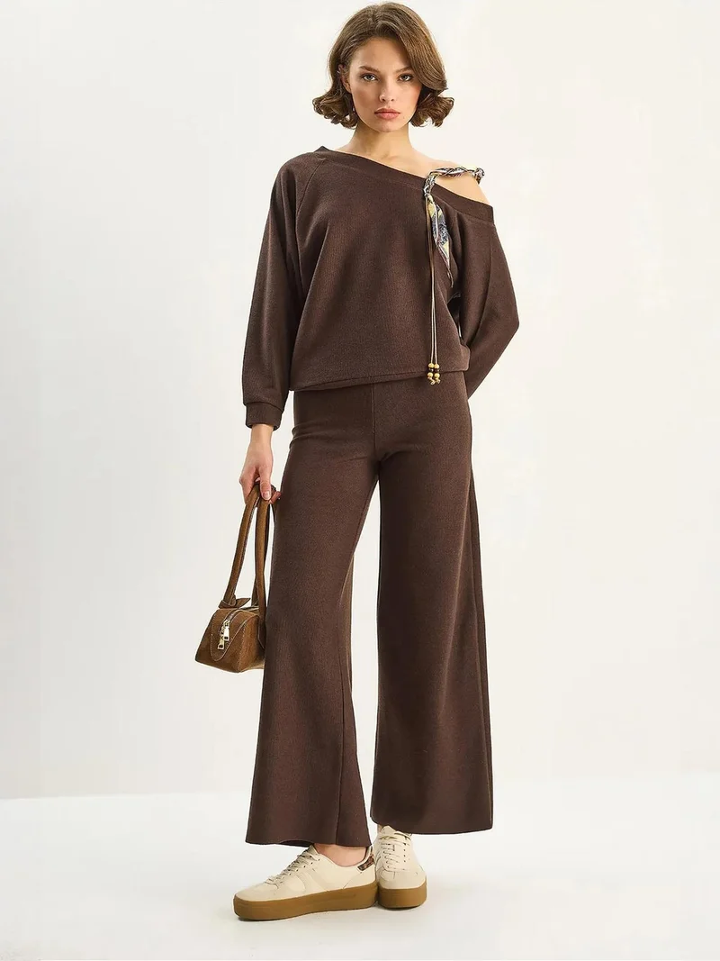 Set of 3 - Ribbed Knit Top, Cardigan and Pants