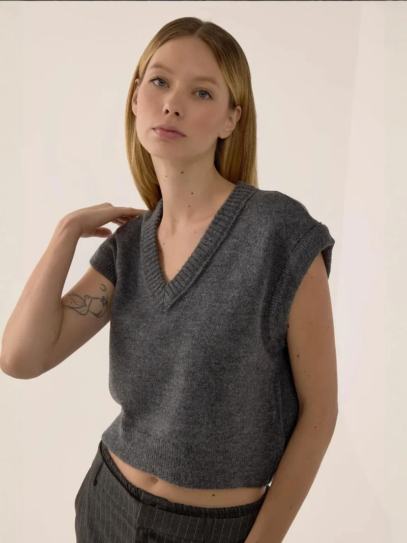 Mish Solid V Neck Long Sleeve Top with Tie-Up Detail